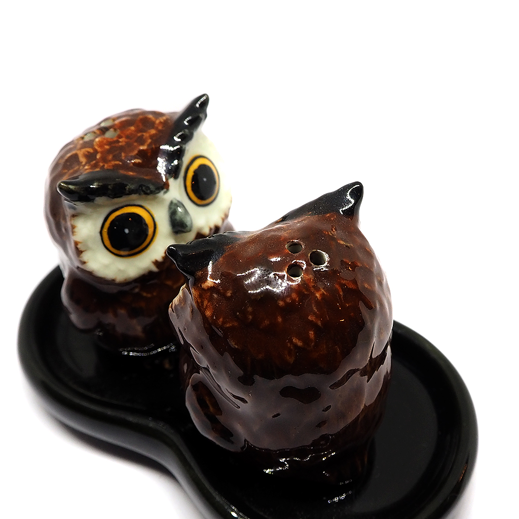 The Wise Guardians: Hand-Painted Ceramic Owl Salt & Pepper Shakers