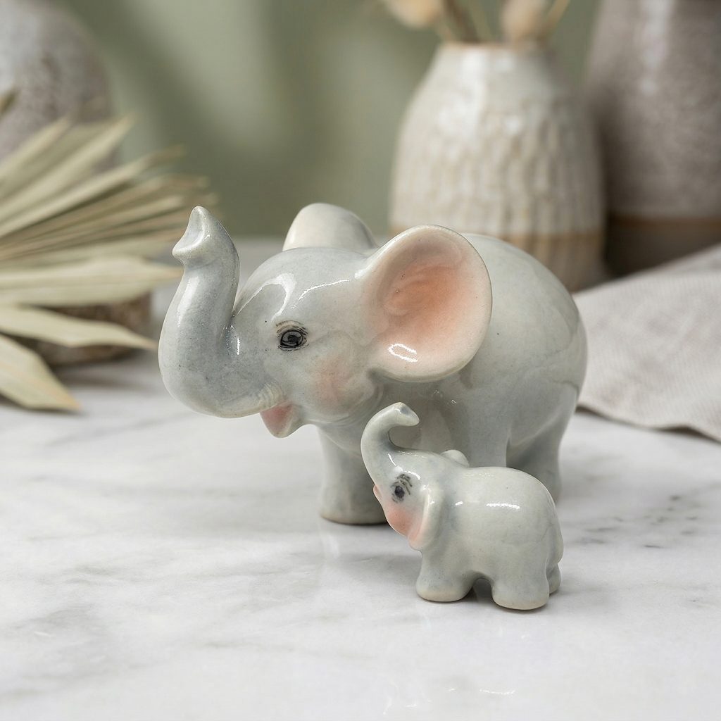 Charming Elephant Mother and Child Ceramic Figurines – A Symbol of Love, Luck, and Abundance