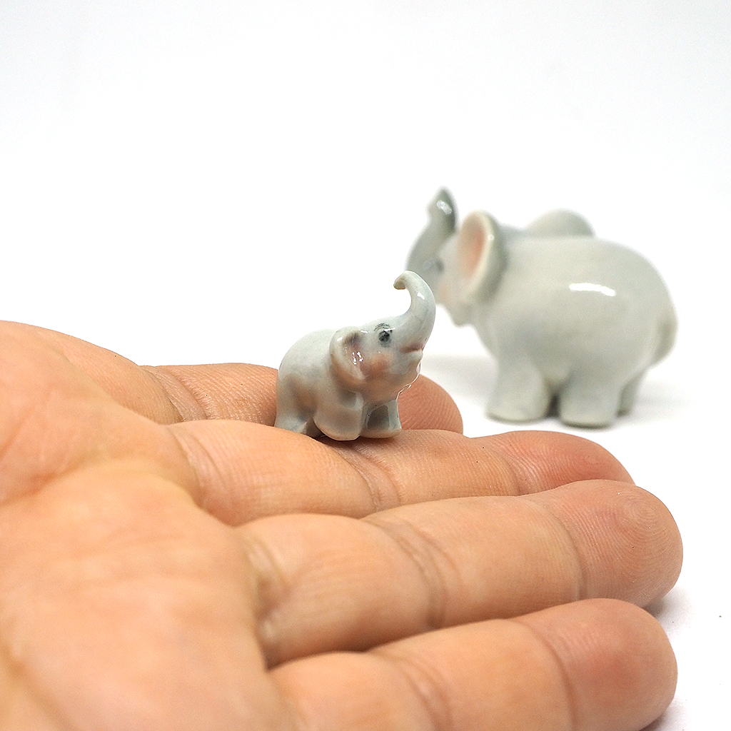 Bring a touch of warmth and good fortune to your home or office with this adorable set of ceramic elephant mother and child figurines. Meticulously crafted and finished with a glossy glaze, these charming pieces are not only aesthetically pleasing but also carry profound symbolic meaning.