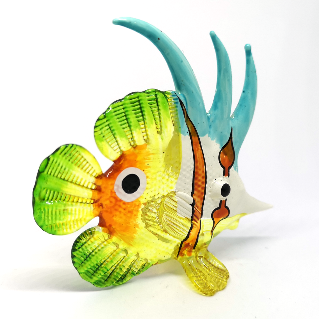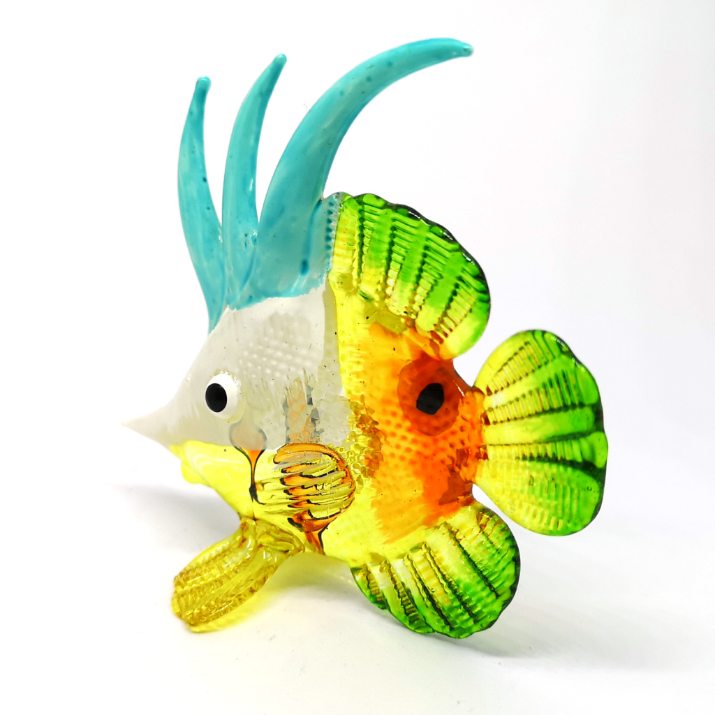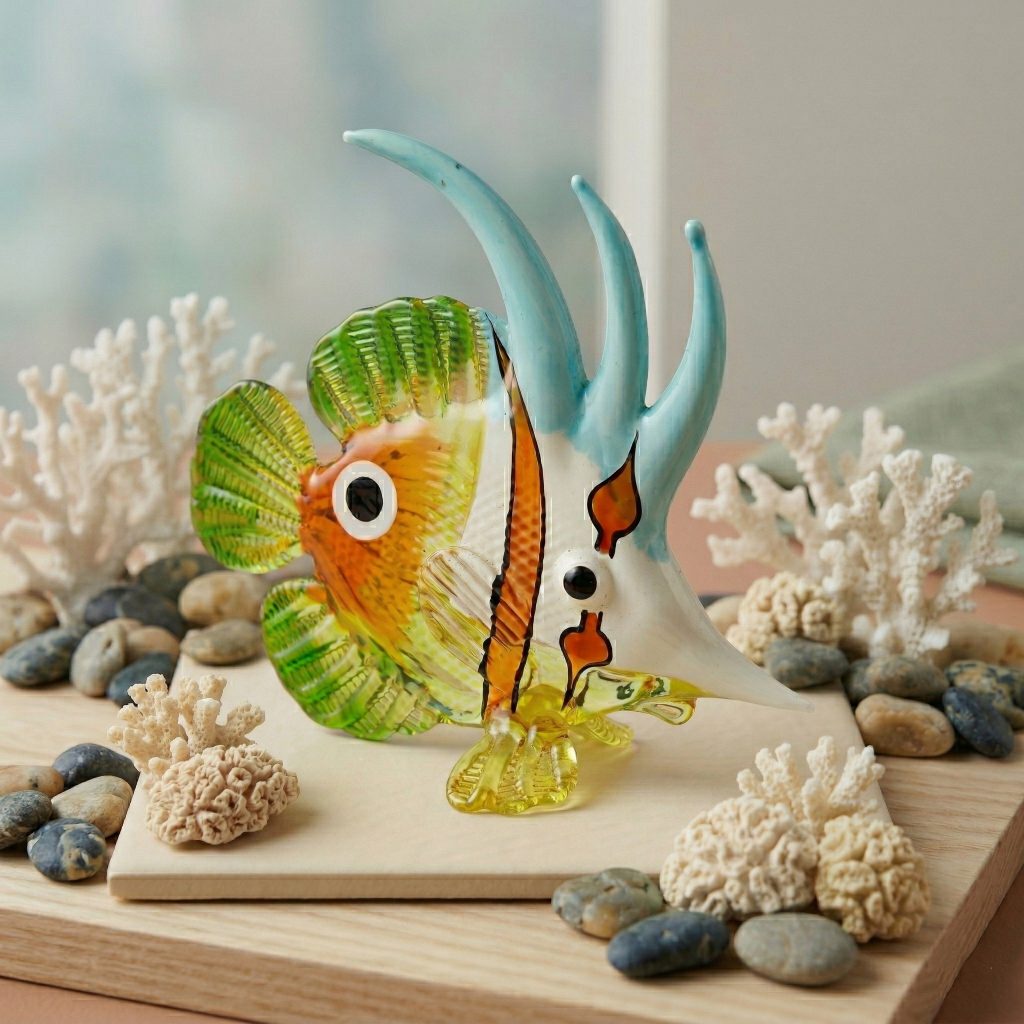 Elevate your living space with this exquisite, handcrafted art glass figurine. Inspired by the graceful movements of the Moorish Idol, this piece captures the vibrant essence of tropical reefs. With its sweeping dorsal fins and a mesmerizing palette of amber, emerald, and sky blue, it is more than just a decoration—it is a statement of elegance.